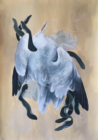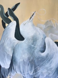 This painting is part of a series I painted in 2019 called Tide Brings the Silver Gull. It depicts the Australian Silver Gull at the threshold of life and death. The paintings are detailed and intricate portrayals which use narrative to explore the tragic realities this beautiful animal is exposed to as a result of human negligence. The gills are graceful and given a sense of dignity in their undignified death.